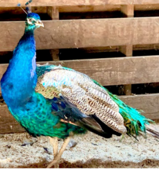 This beautiful peacock was rescued from the snow. He was hungry and scared, and had angered local residents by pecking at their cars. He now flashes his colorful feathers for our volunteers and inspires our guests of the farm with a sense of hope.